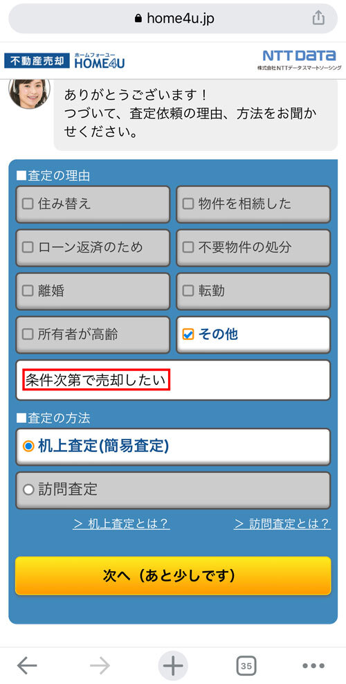 最寄りの不動産会社に出向いて査定を受けたよりも、こちらの査定依頼の方が高く出ました!買った時よりむしろ値段が上がっていて、結果的にも余裕もってローンを完済できました!HOME4Uでも依頼して本当によかったです!