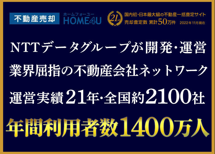 2001年に日本初の「インターネット不動産一括査定」として登場したHOME4Uは、サービス開始から21年の実績があります。